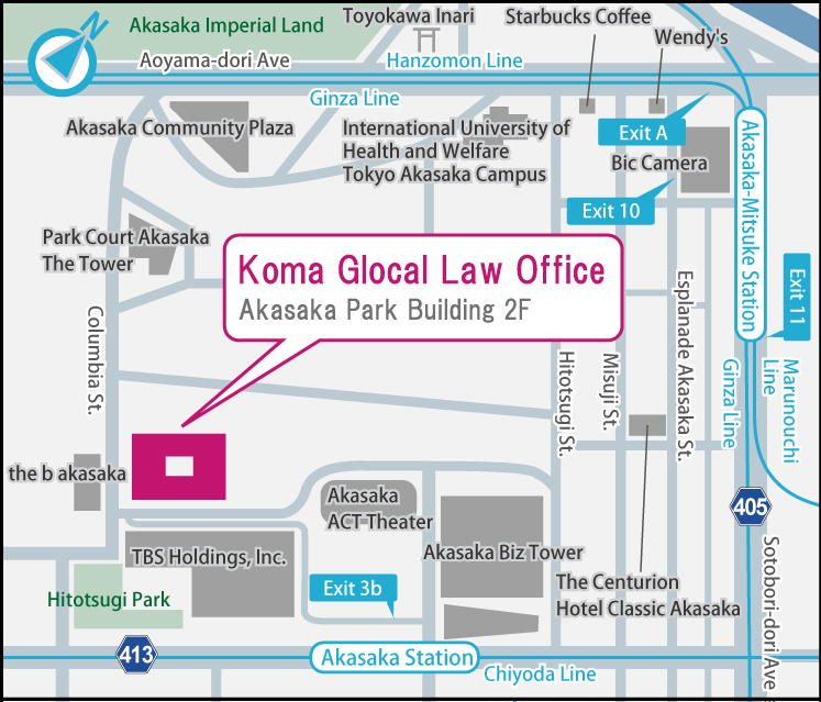 * The numbers of minutes above reflect the walking distance time to the Akasaka Park Building from the closest station exit of each Tokyo Metro Line.